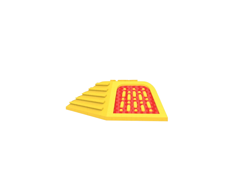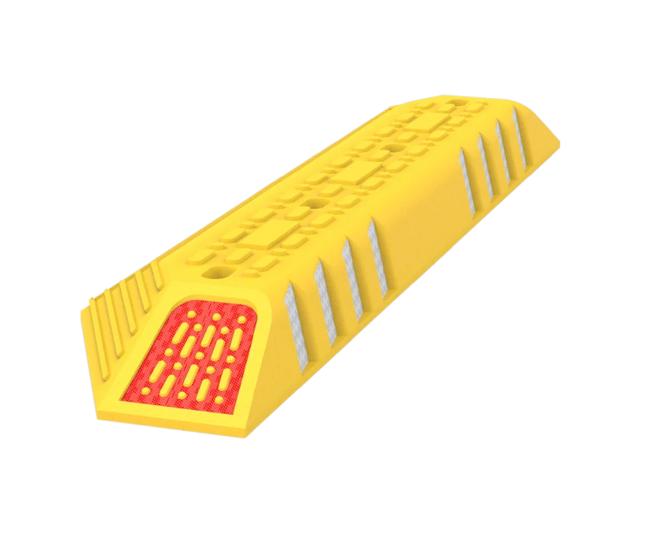 Lateral ramp with anti-skid surface increase safety to prevent falls if a wheel gets on the lane separator.