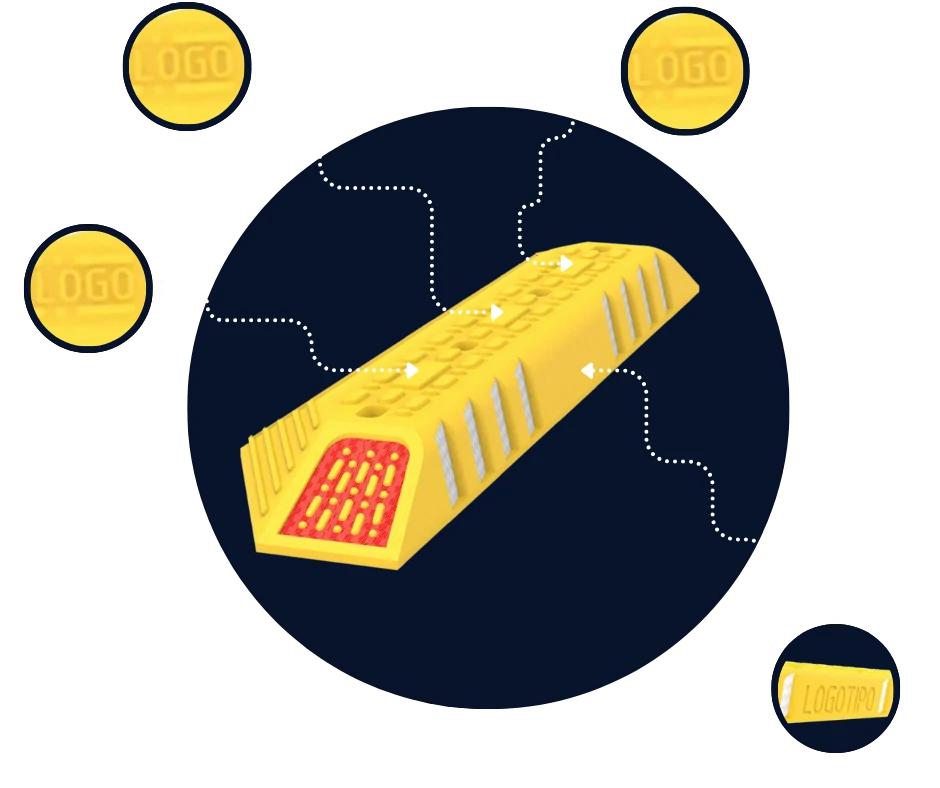 The 8 lateral reflective bands have an optimized angle for a superior visibility of drivers